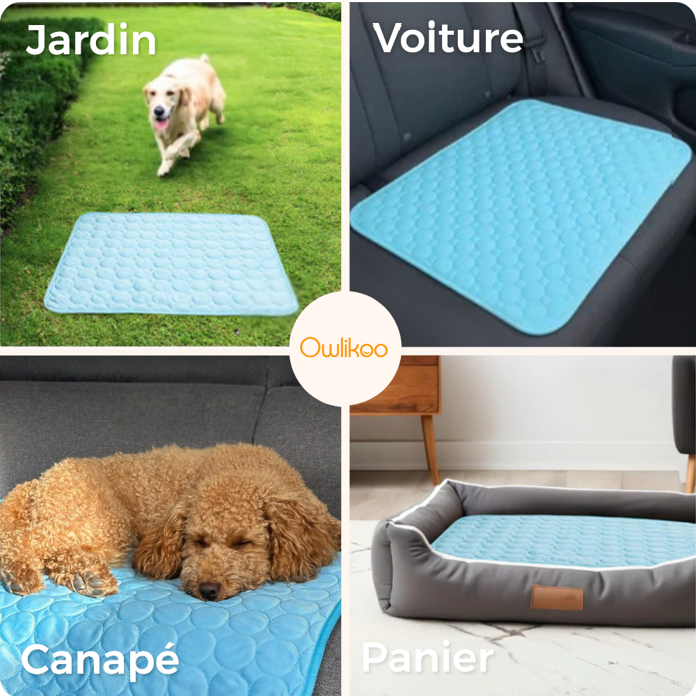 Voir votre chien souffrir de la chaleur est une source d’angoisse. Le tapis rafraîchissant Owlikoo est conçu pour baisser naturellement sa température corporelle (sans gels toxiques dangereux).
