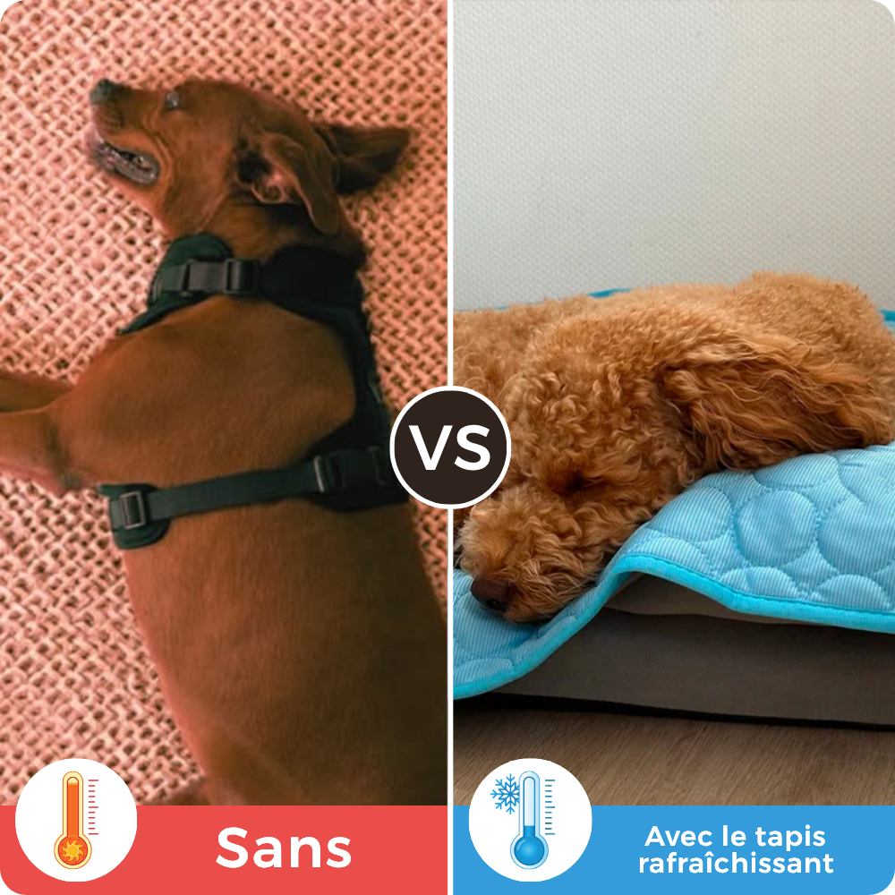 Une simple hausse de température peut être difficile pour nos compagnons à quattres pates. Grâce au tapis rafraîchissant Owlikoo, votre animal retrouve confort et bien-être en quelques minutes seulement. Pas besoin d’eau, de réfrigération ou d’électricité : posez-le simplement où vous voulez, sa température baisse naturellement de 2 à 4 °C — sans effort, sans danger.